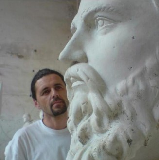 Un moment de travail avec le buste de Fan Noli, buste qui a remporté le premier prix au concours national dédié à Fan Noli, l'une des figures albanaises les plus illustres — écrivain, publiciste, traducteur, prêtre qui a fondé l'Église autocéphale albanaise.